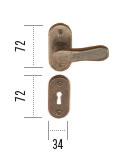 FM 339.YMForged iron door handle ∅ 8 mm on narrow rosette with spring wheelbase cylinder lock hole